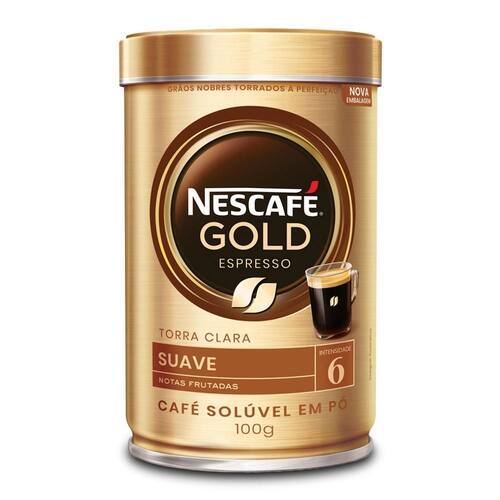 Café Solúvel Nescafé Gold Espresso Suave em Pó Lata 100g Um café sofisticado e equilibrado