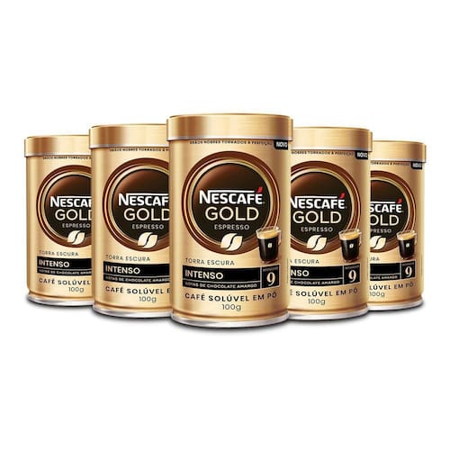 Café Solúvel NESCAFÉ GOLD Intenso Kit 5 Latas de 100g Uma Experiência Sofisticada de Café Solúvel