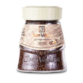 Ingredientes: Café solúvel 100% arábica, aromas naturais de baunilha e canela. Alérgicos: Não contém glúten. Condições de armazenamento: Conservar em local seco e fresco. Após aberto, manter bem fechado. Validade: 12 meses. Fabricante: Juan Valdez.