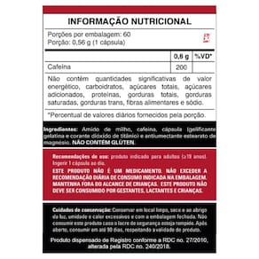 Cafeina 200mg por capsula 60 cápsulas - take care Cafeína 200mg por cápsula 60 cápsulas - take care Descrição A cafeína é uma molécula alcaloide. Essa molécula é uma substância que apresenta ação para o sistema nervoso central, promovendo o aumento do estado de alerta. A cafeína auxilia no aumento da capacidade de resistência e no desempenho de exercícios físicos de resistência. É um suplemento alimentar em cápsulas e um dos seus objetivos é ajudar na redução da fadiga, estimulando o sistema nervoso central, sinônimo de energia, disposição, foco e concentração. Recomendado no pré-treino, sendo capaz de fornecer energia para a prática de exercício físico. Benefícios - apenas 1 cápsula ao dia; - cada dose 1 cápsula fornece 200mg de cafeína; - cada frasco fornece 60 doses/porções; - pode auxiliar no desempenho físico durante os treinos; - pode fornecer maior energia e disposição; - pode reduzir a fadiga; - pode auxiliar no aumento da capacidade de resistência e no desempenho de exercícios físicos de resistência; - não contém glúten. Sugestão de uso Produto indicado para adultos =19 anos . Ingerir 1 uma cápsula ao dia. Tabela nutricional - composição e recomendações Anexo nas imagens. Dados técnicos Registro anvisa - produto dispensado de registro conforme a rdc no. 27/2010, alterada pela rdc no. 240/2018. Marca - take care. Conteúdo líquido total - 60 cápsulas. Rendimento líquido total - 60 doses/porções. Peso líquido total - 33,6g. Peso bruto total - 65g. Peso aproximado produto + embalagem aproximado - 150g. Código de barras ean - 7898411812069. Dimensões do produto - largura: 6cm; altura: 11cm; comprimento: 4,5cm. Dimensões da embalagem/pacote - largura: 13cm; altura: 7cm; comprimento: 16cm. Itens do anúncio 1 unidade do produto: Cafeína 200mg por cápsula 60 cápsulas - take care. Total - 60 cápsulas por frasco.