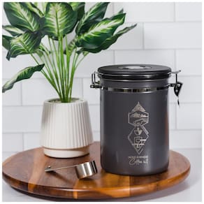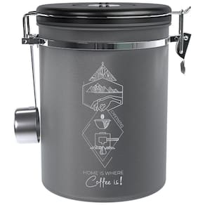 Aço inoxidável real que NÃO tomba É realmente simples testar uma boa lata de café de aço inoxidável se a tampa aberta virar, então não é aço inoxidável 304. Nosso suporte para café e vasilha de chá nunca irão tombar porque nós os construímos com materiais da mais alta qualidade Café fresco por mais tempo em uma lata que parece elegante em sua bancada da cozinha Os recipientes de aço inoxidável CafetastiQ com tampas são projetados com logotipos autênticos por designer premiado, para expressar a manhã perfeita dos amantes do café. Este é um presente de café ideal para você ou para seus entes queridos parece uma obra de arte em seu balcão e faz sua cozinha cheirar divina quando você a abre Mostrador de data inteligente que ajuda você a acompanhar o frescor do seu café Nunca se esqueça de quando é hora de comprar um café com o design do mostrador de data inteligente na tampa. Recipiente de zenamento de café hermético vem com uma colher extra projetada para conter exatamente a quantidade de terra você precisa de café para duas deliciosas xícaras de expresso forte Marca: Não Informado