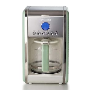 A Cafeteira da Linha Vintage para prepara de 4 a 12 xícaras de um delicioso café, quente e saboroso. Graças ao timer integrado e ao display LCD, é possível programar o preparo do café para as próximas 24 horas. A base de suporte da jarra em vidro temperado mantém o café aquecido por cerca de meia hora. O sistema antigotejamento permite que a cafeteira interrompa o fluxo ao remover a jarra. O fornecimento pode ser reiniciado pressionando o botão Pausar e Servir e o porta-filtro é removível e facilmente lavável.