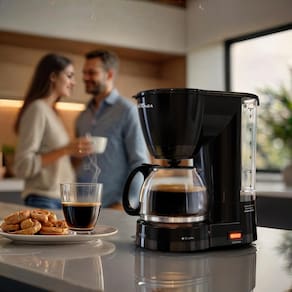Seu reservatório de água de 1,2L permite preparar mais café de uma só vez, enquanto o sistema corta-pingos evita sujeira ao retirar a jarra antes do término do preparo. Além disso, a base de aquecimento mantém o café quente por mais tempo, ideal para reuniões ou família grande.