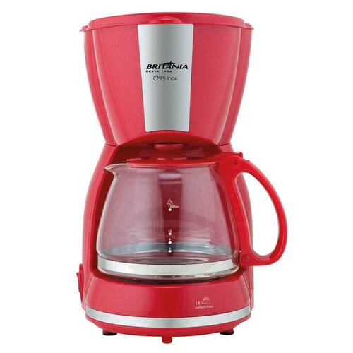Cafeteira Britânia CP15 Vidro Vermelha Com Inox 220V