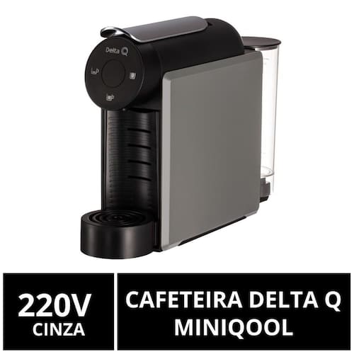 Mais compacta, moderna e robusta do que imagina. Mini por fora. Enorme por dentro.Elegante e minimalista, esta máquina elegante é super rápida para preparar sua bebida favorita. Nomeie suas preferências (espresso ou café longo) e o MiniQool oferecerá a bebida perfeita. Com seu design minimalista, é muito fácil de usar. Basta pressionar o botão para começar a saborear sua bebida.Sobre a Cafeteira Delta Q MiniQool- Compacta e versátil.- Elegante e minimalista.- Rápida no preparo do café.- Fácil de usar e prática.Especificações Técnicas- Marca: Delta Q- Cápsulas compatíveis: Delta Q- Linha: MiniQool - Voltagem: 220 V- Potência: 1200W- Pressão: 19 Bar, para uma bebida muito cremosa- Dimensões: 35,8cm x 9,5cm x 26cm- Capacidade deposito água: 0,6 L- Capacidade do depósito cápsulas usadas: 7 cápsulas- Cor: CinzaSobre a Delta Q Delta Q é uma linha de cápsulas de café e cafeterias de Portugal, presente em todo o mundo. Combinação única de lotes de café das mais diversas origens, conservada em cápsulas que preservam todo o sabor e aroma, e que é preparada através de uma sofisticada e elegante linha de máquinas.