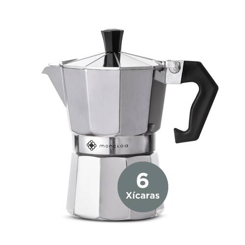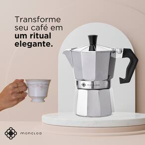 A Classic Moka Moncloa é fabricada em aço-inox e polipropileno, materiais que fazem sua cafeteira durar por mais tempo.