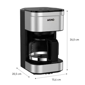 Cafeteira Elétrica Arno Preferita CFPF Inox 220v Com design moderno, Arno Preferita permite que você faça um delicioso café quente. Possui sistema corta pingos, função manter aquecido e filtro de café permanente. Café quente, simplesmente delicioso Serve até 18 xícaras de café, dada sua capacidade de 0,75L Café sempre quentinho, uma vez que possui placa de aquecimento que funciona enquanto a máquina estiver ligada na tomada Design premium e em inox Sem sujeira no seu equipamento, uma vez que possui sistema corta pingos Acompanha filtro permanente e colher medidora Jarra de Vidro