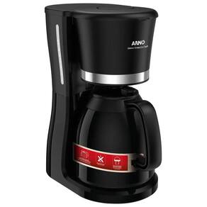 Cafeteira Filtro Arno com Jarra Térmica Cool Touch 1 Litro Capacidade 25 Cafes 127V - CFCTJarra térmica com interior em vidro espelhado, que mantém seu café quentinho, sem sabores indesejáveis.Saboreie seu café todos os dias sempre fresco e quentinho com a nova Cafeteira Filtro Thermo Cool Touch, com garrafa térmica de alto desempenho que mantém o café quente por pelo menos quatro horas.Compacta no tamanho e linda no design, a nova Cafeteira Filtro Thermo Cool Touch foi feita especialmente para quem gosta de café quente e fresco o dia todo, oferecendo conforto e comodidade para manter a temperatura para até um litro de café.Compacta no tamanho e linda no design, a nova Cafeteira Filtro Thermo Cool Touch foi feita especialmente para quem gosta de café quente e fresco o dia todo, oferecendo conforto e comodidade para manter a temperatura para até um litro de café;Além de combinar perfeitamente com a sua cozinha por conta de seu design moderno e arrojado, a cafeteira conta com um acabamento premium, e a sua garrafa térmica de alta performance, com o interior em vidro espelhado, pode ir direto à mesa ou ao escritório, permitindo manter a cafeteira fora da tomada ao longo do dia;Disponível nas duas voltagens, a Cafeteira Filtro Thermo Cool Touch possui filtro permanente que elimina a necessidade de utilização de descartáveis e acompanha uma colher dosadora para ajudar na medição. A cafeteira tem capacidade para até 25 xícaras e possui tecnologia de controle de gotejamento, para que você possa desfrutar o café durante o ciclo de preparação com máxima segurança e garantir que o resultado seja sempre excelente e delicioso, pronto para beber e compartilhar os melhores momentos;Caracterisiticas:Voltagem: 127V Não é Bivolt Modelo: CFCTLinha: Cool TouchMaterial da jarra: Vidro espelhadoTipo de jarra: TérmicaRendimento: 25 Xícaras de caféCapacidade do reservatório de água: 1 Litros FiltroPotência: 815WTipo de tomada: 20ACor: Preto FoscoMaterial: PlásticoDimensões do produto: Largura: 20,8 cm Altura: 38,8 cm Profundidade: 38,8 cmGarantia de fabrica: 12 meses