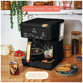 Marca: Beautiful (linha Multi-Brew) ?Modelo: MultiBrew19615 Tipo de produto: Cafeteira elétrica de gotejamento multi-preparo Cor: Preto Capacidade da jarra: 12 xícaras Tipo de café: Café em pó e cápsulas de dose única compatíveis Modos de preparo: Café quente e café gelado (Iced Coffee Mode) Dimensões do produto (P x L x A): 31,1 cm x 36,2 cm x 28,6 cm Peso do produto: 6,2 kg Tensão: 110V ?Tipo de operação: Totalmente automática com painel touch Funções do painel: Timer, preparo programável, início automático, manter aquecido, desligamento automático Acabamento externo: Fosco soft-touch com detalhes metálicos Tipo de jarra: Jarra de vidro com cabo e tampa Filtro: Cesto de filtro reutilizável (compatível com filtros de papel) Entrada de café: Pó e cápsulas de dose única Uso indicado: Uso doméstico, escritório, uso diário e preparo de café gelado Ambiente de uso: Interno Itens inclusos: Unidade da cafeteira, jarra de vidro, cesto de filtro reutilizável e manual de instruções Manual do usuário: Inglês Marca: Não Informado