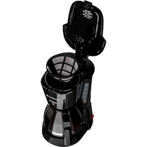 Praticidade: A cafeteira possui os indicadores de medida de água, na parte interna, e de café na jarra, facilitando o preparo.