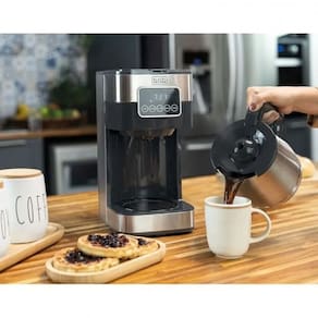 Além disso, conta com uma jarra de inox resistente a impactos e choque térmico, filtro permanente lavável, sistema corta pingos, base aquecedora por até 40 minutos e acompanha colher medidora.
