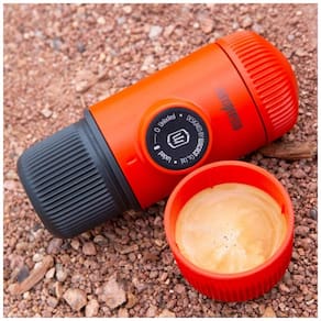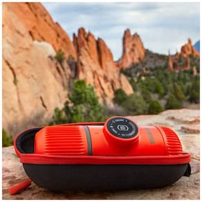 Cafeteira expresso portátil, sem necessidade de bateria ou eletricidade, sistema de bombeamento patenteado, pressão máxima de 261 PSI, design ergonômico e leve, tanque de água com capacidade de 80 ml, fácil de usar e transportar.Moedor de café integrado