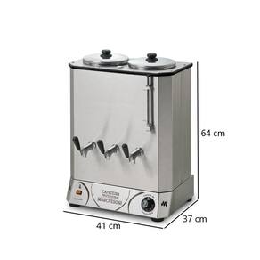CARACTERÍSTICAS TÉCNICAS: Capacidade Total: 12 Litros (2 Bojos de 6 Litros Cada) Dimensões (C x L x A): 37 x 41 x 64 cm Potência: 2500W Consumo: 2,50 kWh Tensão: 220V Peso: 10,7 kg Material: Aço Inox Escovado Aquecimento: Banho-Maria Acessórios Inclusos: Coador de Pano Tipos de Bebidas: Café, Leite, Achocolatado, Café com Leite, Chá