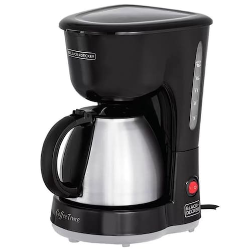 afeteira Eletrica 18 Cafes Jarra Inox Sistema Corta Pingos Preto 600W 127V Black'n Decker- Mais sustentabilidade com o filtro permanente desta prática cafeteira.- Jarra em aço inox de 750ml mais beleza e durabilidade;- Amplo visor do nível de água mais praticidade para o dia a dia;- Sistema corta-pingos permite que a jarra seja retirada da cafeteira antes que o processo total de preparo seja concluído, sem vazamentos;- Prepara até 18 xícaras de café;- Porta filtro removível para facilitar a limpeza;- Base aquecedora;- Acompanha colher medidora;- Botão com luz indicadora de funcionamento;- Potência: 600WMarca: Black+DeckerCódigo: 78123
