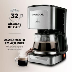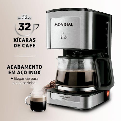 ACABAMENTO EM AÇO INOX: A cafeteira Elétrica Dolce Arome C-44-32X-SI está disponível na cor preta e com acabamento em aço inox. Garantia de beleza e um visual moderno para a sua cozinha!
