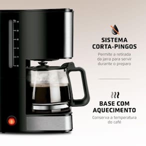 SISTEMA CORTA-PINGOS: Permite a retirada da jarra para servir o café durante o preparo.