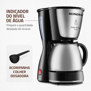 A Cafeteira Elétrica Dolce Arome C-34-JI-15X pode preparar até 15 xícaras de café com muita praticidade. Possui filtro permanente e porta-filtro removível que proporcionam mais sustentabilidade ao meio ambiente. Moderna, a jarra em inox é mais durável, fácil de lavar e pode ser levada à mesa. Conta com sistema corta-pingos e base com aquecimento para conservar a temperatura do café por mais tempo. Saiba mais sobre a C-34-JI-15X da Mondial: