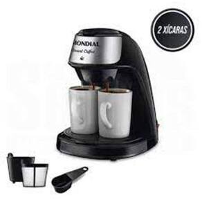 Cafeteira Elétrica Mondial Smart Coffee Com 2 Xícaras Cor Preto 127V-C-42-2X-BI Cafeteira Elétrica Mondial Smart Coffee Preta C-42-2X-BI - 127 VoltsA Cafeteira Elétrica Mondial Smart Coffee Preta C-42-2X-BI - 127 Volts prepara 2 xícaras de café ao mesmo tempo. Ela acompanha 2 xícaras e colher dosadora, tem porta-filtro permanente, que dispensa filtro de papel, e bandeja antiderrapante. Compacta, ela prepara 2 cafés de 120ml ao mesmo tempo, o café fica pronto rapidamente, direto na xícara. A tampa basculante traz mais facilidade na hora de colocar a água e o pó de café.Bandeja antiderrapante evita que as xícaras escorreguem e é removível, mais fácil de limpar, possui proteção contra super aquecimento. Ela é super prática de usar, basta usar a colher dosadora, escolher 1 ou 2 xícaras e pronto Em instantes você terá café quentinho.Filtro permanente e porta-filtro removível. Tampa basculante. Acompanha colher dosadora. Liga/desliga luminoso. Acompanham 2 xícaras. Base removível.