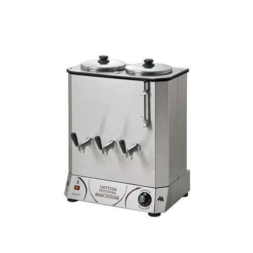 diferenciais: - bojos em aço inoxidável 304; - possui resistências blindadas de alta performance; - possui exclusiva torneira horizontal, indicada para café e leite; - possui termostato para controle de temperatura de 20 graus a 120 graus; - possui visor de nível para reservatório de água; - possui aquecimento em banho-maria - conserva o sabor e o aroma da bebida;