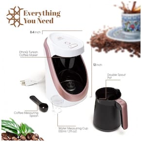 FAÇA CAFÉ TURCO AUTÊNTICO A cafeteira perfeita para quem gosta de uma xícara forte e ousada de café turco. A cafeteira elétrica turca vem com todas as ferramentas que você precisa, incluindo uma colher medidora e um copo de água Com minutos de tempo de preparo para que nunca haja espera pelo primeiro gole. TECNOLOGIA COOK SENSE Com a tecnologia cook sense, a cafeteira elétrica turca faz todo o trabalho para você. Não há necessidade de ficar na frente dele, pois os sensores serão desligados automaticamente quando a espuma atingir um nível perfeito. FUNÇÃO EMBER COOKING A máquina de café turco ETHNIQ não apenas prepara a xícara de café perfeita, mas também possui uma função de cozimento Ember que permite obter espuma e sabor duplos e oferece a seus convidados ou a você uma experiência de degustação semelhante como se fosse fabricado sobre areia ou brasa. CAPACIDADE PARA 960 mL A Máquina de Café ETHNIQ possui dois modos de seleção de capacidade. Com a seleção de xícaras para 1 2 pessoas e 3 4 pessoas, você pode tomar uma xícara espumosa e forte de café turco para você e seus entes queridos em 2 3 minutos