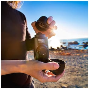 O Minipresso GR é a melhor opção para saborear todas as variedades de café moído e desfrutar de um expresso autêntico onde quer que esteja. Compacto, leve e resistente, o Minipresso fará você sorrir quando você receber o primeiro gole de café expresso desta pequena bala de café.Moedor de café integrado