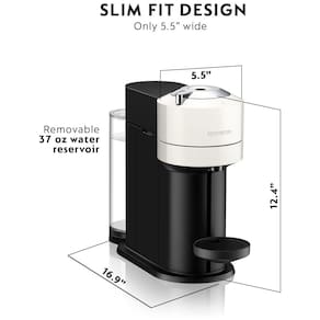 MPOSSIVELMENTE BOA QUALIDADE A única máquina Nespresso Vertuo que distribui 6 tamanhos Café 147, 236 e 414 mL, Espresso simples e duplo. Café caraffe 500 mL estilo derramar exclusivamente para Vertuo Next QUALIDADE HABILITADA PELA TECNOLOGIA Esta máquina Nespresso Vertuo oferece os melhores resultados na xícara para cada mistura usando cerveja específica para cápsulas com leitura de código de barras, resultando em um creme sedoso sobre o café A assinatura de uma xícara de café verdadeiramente excelente QUALIDADE SIMPLES Esta máquina Nespresso oferece uma xícara de café consistente e deliciosa com o toque de um botão. Após a fermentação, a cápsula é automaticamente ejetada e zenada pronta para ser reciclada e a máquina desliga para economizar energia DESIGN DE QUALIDADE a mais recente inovação da Nespresso, a Vertuo Next é a máquina de café individual Vertuo mais compacta, sustentável e inteligente até hoje. É feito de 54 de materiais reciclados e tem apenas de largura. Ele também vem com um tanque de água removível QUALIDADE ENRAIZADA NA SUSTENTABILIDADE A cápsula lacrada de alumínio protege o frescor do nosso café, mas também é reciclável. O programa de reciclagem da Nespresso torna fácil devolver e reciclar suas cápsulas com opções em casa e na loja em todo o país