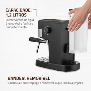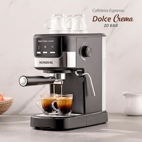Cafeteira elétrica para espresso Mondial Dolce Crema C20, design moderno, prepara duas xícaras simultaneamente.Pressão