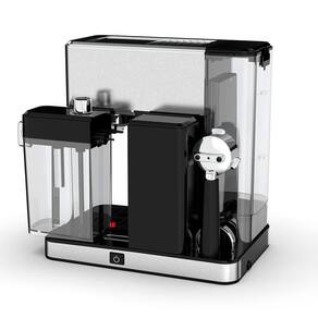 -O Reservatórios de água e leite foi projetado em plástico resistente, removível e fácil de limpar.