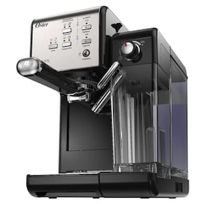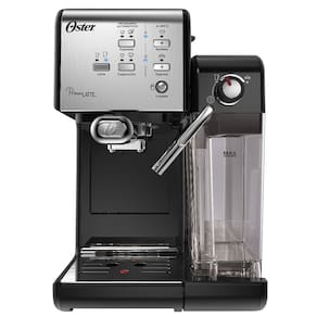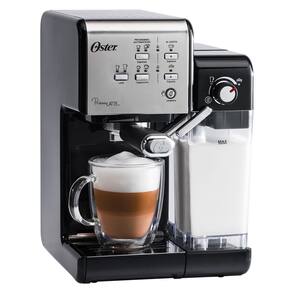 Cafeteira Espresso Oster PrimaLatte Black, compatível com café em pó, cápsula Nespresso® ou sachê. Prepara Espresso, Cappuccino e Latte Machiatto. Possui recipiente de leite com 0,6 litro e vaporizador acoplado.Moedor de café integrado