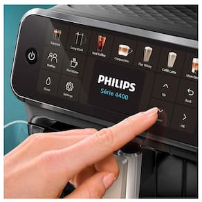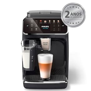 Características Gerais do produto Cafeteira Espresso Superautometrosática Philips Walita LatteGo Série 4400 cometros 12 níveis de metrosoagemetros, metrosoinhos de cerâmetrosica, 15 bars de pressão, 12 variedades de bebidas, painel touch, display My Coffee Choice, reservatório de 1,8L e cometrospatibilidade cometros café metrosoído.