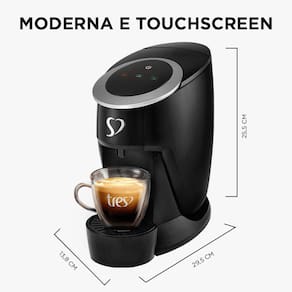 Cafeteira de Espresso e Multibebidas Automática Touch TRES® 3 Corações Modernidade, praticidade e sofisticação no seu dia a dia A Cafeteira Automática Touch TRES® 3 Corações é a escolha perfeita para quem busca tecnologia e praticidade na hora de preparar suas bebidas favoritas. Compacta, silenciosa e elegante, ela conta com um painel touchscreen sensível ao toque, que torna o preparo muito mais intuitivo e rápido. Com o sistema multipressão, a máquina prepara espressos, cafés filtrados, cappuccinos, bebidas cremosas, chás e até chocolattos com qualidade profissional, preservando o aroma e sabor de cada cápsula.