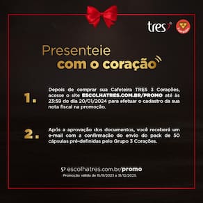 A Luna é a nova cafeiteira automática de espressos e multibebidas do Grupo 3 Corações. Com um design moderno e compacto é uma máquina silenciosa que prepara espressos perfeitos, cappuccinos, bebidas cremosas, cafés filtrados e chás naturais ao simples toque de um botão. A Luna é silenciosa, possui um compartimento interno para até 5 cápsulas usadas e sistema multipressão.