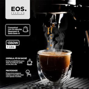 Muito importante:-- conferir produtos no ato do recebimento. Não aceitar produtos com embalagem violada amassado, rasgado, aberto, quebrado, etc , a recusa deve ser feita no ato.Cafeteira expresso italiana 3 em 1 inox dupla saída cafeteria ecf01ec 220v - eos b170566apresentamos a cafeteira expresso eos premium 3 em 1 inox ecf01ec, a escolha perfeita para os amantes de café que buscam uma experiência completa e irresistível. Com um design elegante em aço inoxidável, esta cafeteira oferece versatilidade e qualidade excepcionais, proporcionando um café perfeito a qualquer momento do dia.Desfrute da praticidade e da ampla variedade de opções que a cafeteira expresso eos premium 3 em 1 oferece. Compatível com cápsulas, pó ou sachê, você pode experimentar diferentes sabores e aromas, sempre com resultados surpreendentes. Seja um expresso encorpado e intenso, um capuccino cremoso, um latte suave ou um machiatto irresistível, esta cafeteira faz tudo isso com maestria.Informações adicionais:- design moderno;- para toda a família: volume de 1 litro;- supremo-espresso: produz 1 xícara em 25 segundos;- com função de espuma de leite para fazer cappuccino;- cápsula, pó ou sachê;- bomba italiana de 19bar;- vapor ajustável;- tanque de água removível transparente, bandeja coletora lavável;- com dispositivo de proteção contra superaquecimento e sobrepressão;especificações técnicas:- modelo: ecf01ec;- cor: inox;- garantia: 12 meses;- acessótios inclusos:1 filtro para espresso simples;1 filtro para espresso duplo;1 adaptador para capsulas nespresso;1 adaptador para capsulas dolce gusto;1 colher-compactador de café.- medida lxaxp/cm : 19 x 30 x 42 cm;- peso líquido kg : 4,2 kg;- potência w : 1350w;- sku salvador comercial: 014204- tensão v / frequência hz : 220v / 60hz.- medidas da embalagem: 37cm a x 37cm l x 23cm p;- peso bruto: 4,6kg.- o filtro de café pressurizadoSim, o filtro é pressurizado.- a cafeteira é inox ou plástico cor inoxÉ de inox sae304.--tags-- cafeteira expresso italiana 3 em 1, inox dupla saída cafeteria ecf01ec 220v, marca eos b170566, preparo de espresso, cappuccino e mais, design clássico e elegante, cafeteira de alta performance, tecnologia 3 em 1, dupla saída para eficiência, cafeteria profissional em casa, preparo de bebidas variadas, fácil operação e limpeza, sabor autêntico de café italiano, qualidade e durabilidade em inox, versatilidade e praticidade, preparo rápido e consistente, café com excelência em aroma e sabor, marca eos ecf01ec, cafeteira de espresso de alto desempenho.