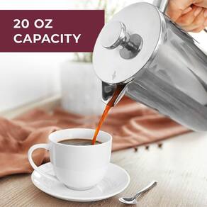 - Sabor robusto e encorpado — Faça até quatro xícaras de 5 onças em um lote. Nossa garrafa de 20 onças viaja bem. Use também para preparar chá, chocolate quente e para manter o leite espumado quente. Um gráfico no manual incluído ajuda você a controlar a intensidade do café.