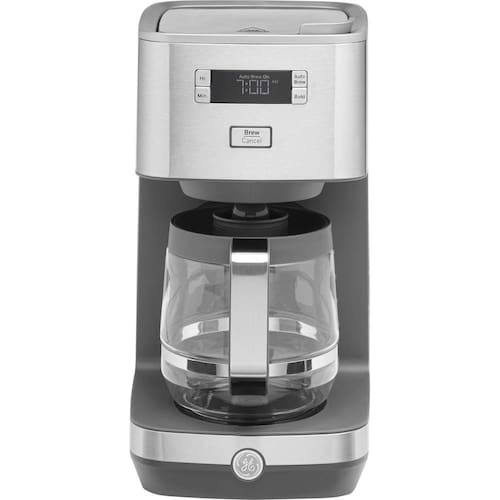 GE Cafeteira de gotejamento com temporizador | Cafeteira de vidro para 12 xícaras com placa de aquecimento | Força de fermentação ajustável | Chuveiro largo para o máximo sabor | Essenciais de cozinha