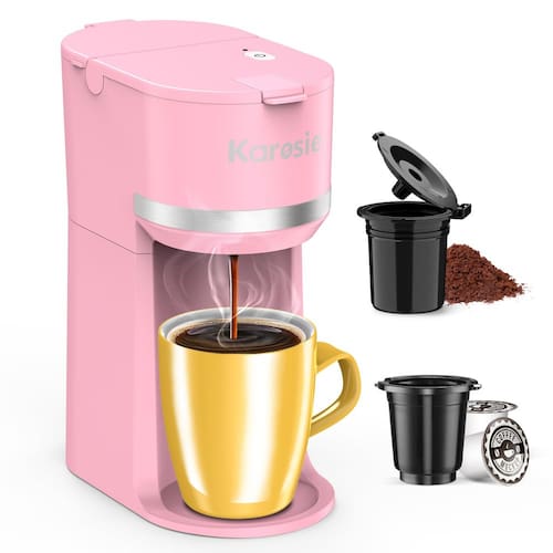 - ?Preparação de 2 maneiras?A cafeteira de dose única Karosie é compatível com cápsulas K e café moído, o que satisfaz as diversas necessidades de sabor dos amantes de café. Com uma capacidade de preparação de 170 a 340 g, possui uma operação de um botão que prepara rapidamente uma xícara fresca de café quente. Ótimo para manhãs caóticas quando você precisa de cafeína o mais rápido possível