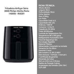Fritadeira Airfryer Série 3000 Philips Walita Preta 1400W - RI9201
