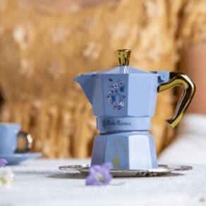 O ritual do café em perfeito bon ton inglês. A colaboração entre Bialetti e Netflix deu origem a uma preciosa Moka Espress decorada com elementos florais e detalhes dourados para tornar o momento do café ainda mais romântico e intrigante.