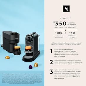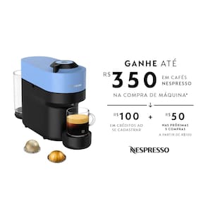 - Nespresso Vertuo oferece uma variedade completa de xícaras de café, desde um espresso mais suave e frutado até uma grande Mug, tudo ao toque de um botão e com um crema suave. - Alta conveniência e flexibilidade: Operação simples de um botão, ejeção automática de cápsulas de café. - Um design fresco e divertido: Disponível numa seleção de cores vibrantes. - Um nível avançado de tecnologia: Graças à tecnologia inteligente Bluetooth® e WI-FI, a máquina de café Vertuo Pop garante-lhe sempre a melhor e mais atualizada experiência de café Nespresso, graças à atualização automática do software. - Sustentabilidade: Como empresa B certificada, a Nespresso cumpre os mais elevados padrões de desempenho social e ambiental verificado, juntando-se a um movimento global usando os negócios como uma força para o bem. As cápsulas de Nespresso são recicláveis. Todas as cápsulas de alumínio recolhidas pela Nespresso são recicláveis. - 4 tamanhos de xícaras (40ml, 80ml, 150ml e 230ml) - Preparação de Blend específica utilizando 5 parâmetros: volume de extração, velocidade de extração, temperatura da água, velocidade de rotação e tempo de infusão - Tempo de aquecimento: 30 segundos - Suporte da xícara removível - Desligamento automático em 2 minutos - Classe de consumo de energia: A+Tipo de café