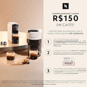 Adicione um toque de cor e estilo à sua rotina com a máquina Nespresso Vertuo Pop. Agora disponível em oito cores vibrantes, do Lilás ao Rosa Candy, a Vertuo Pop traz um toque de personalidade para combinar com o seu estilo. Seu design elegante e compacto garante que se encaixe perfeitamente em qualquer ambiente, da cozinha à sala de estar. Com sete tamanhos de xícara, do Ristretto ao Carafe, basta escolher sua cápsula Nespresso, inserir na máquina e preparar seu café ao simples toque de um botão. Para acompanhar sua que lê jornada no mundo do café, a Vertuo Pop utiliza a tecnologia patenteada Centrifusion o código de cada cápsula Vertuo e ajusta automaticamente os parâmetros para extrair o melhor sabor, aroma e uma crema irresistível. Assim, você vivência uma experiência única, a cada xícara. A Vertuo vai acompanhar o ritmo da sua rotina, graças aos recursos avançados de conectividade, uma vez conectada, sua máquina permanecerá atualizada, garantindo uma experiência de café suave e consistente. Você ainda aproveita a praticidade da manutenção fácil, direto do seu smartphone. E para reduzir seu impacto no planeta, a Vertuo Pop é feita com 29% de plástico reciclado. Uma jornada no universo do café, com um toque especial.