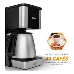 Características do produto Características gerais Marca Philco Modelo PCF40C Cor Preto Voltagem 110v Tipos de cafeteira De filtro Desenho Materiais da estrutura Aço inoxidável Com tela digital Não Com bocal duplo Não Acessórios Acessórios incluídos Colher Peso e dimensões Largura 20 cm Profundidade 35 cm Altura 20 cm Peso 1,95 kg Especificações Tecnologia Automática Capacidade de água 1,6 L Potência 950 W Tipos de filtros Permanente Capacidade de canecas 40 Funções Inclui temporizador Não Com dispositivo de antigotejamento Sim Com indicador de água Sim Com controle de temperatura Não