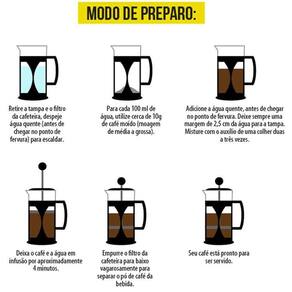 Ela possui um mecanismo muito simples com ótimo sistema de filtragem, que não deixará que o pó de café vaze, garantindo que você terá uma bebida forte mas sem sedimentos. A cafeteira francesa consiste de uma jarra e uma haste com um filtro anexado no final.