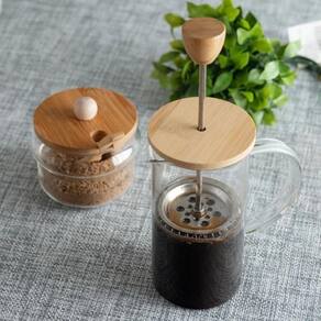 Cafeteira Prensa Francesa Vidro 350Ml Com Tampa Bambu Café
