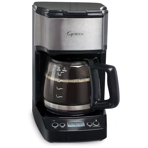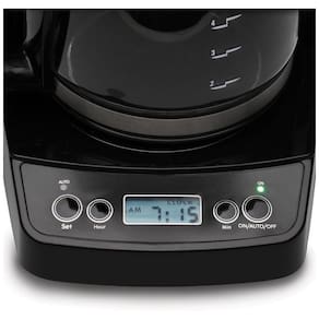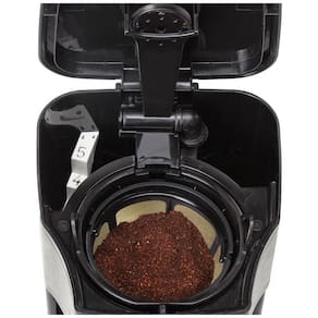 Nota 1 Uma moagem muito grossa, pouco café ou compactação insuficiente do pó antes da infusão podem levar a uma pressão inadequada para uma infusão adequada. 2É importante observar que a quantidade de expresso extraída varia de acordo com o tamanho e a quantidade da moagem e pode ser necessária uma reprogramação quando o tamanho e a quantidade forem ajustados. Consulte o guia do usuário ou manual do usuário ou guia do usuário fornecido abaixo em PDF antes da primeira utilização. DESIGN COMPACTO A jarra de vidro de 5 xícaras de tamanho perfeito é ideal para 1 ou 2 pessoas. FILTRO GOLDTONE Elimina a necessidade de filtros de papel sujos e é fácil de limpar. PROGRAMÁVEL Defina a máquina para preparar automaticamente no horário programado. A jarra de vidro possui tampa de passagem, bico de vazamento sem gotejamento e alça ergonômica. KEEP WARM A placa quente permanece ligada durante 2 horas e depois desliga se automaticamente. DRIP STOP Despeje um copo durante o preparo