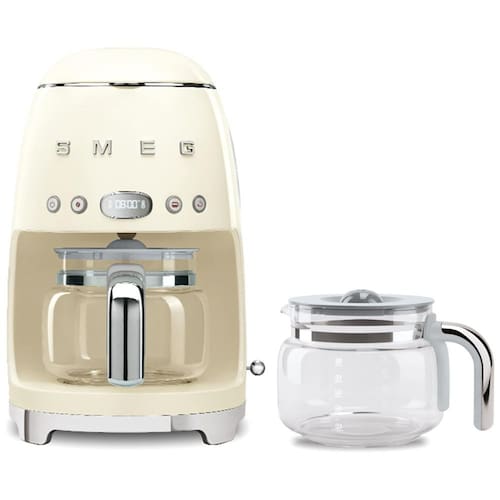 A cafeteira SMEG DCF02 é a mais recente inovação em eletrodomésticos da marca única. Este modelo vem com uma variedade de funções e recursos projetados para satisfazer uma ampla gama de consumidores e amantes de café. Com um design elegante inspirado nos anos 50, esta cafeteira possui uma função de Manter Quente estendida, mantendo o café aquecido por até uma hora após o preparo. Além disso, é possível desativar os sons, facilitar a abertura da tampa e alternar entre os modos de relógio de 12 e 24 horas. A jarra de vidro extra e a função anti derramamento garantem praticidade e limpeza. Com capacidade para 10 xícaras, oferece opções de preparo de 4 xícaras ou jarra completa. Destacam-se também as funções personalizáveis, como início automático, intensidade de aroma e ajuste de dureza da água. Uma escolha ecologicamente correta, pois possui filtro reutilizável e é compatível com filtros de papel. Aproveite o design retrô, a praticidade e o sabor único que essa cafeteira programável oferece.