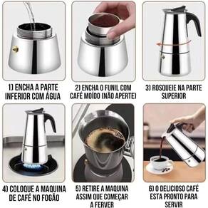 Contém; 01 Cafeteira Tipo Italiana Inox para 6 xicaras