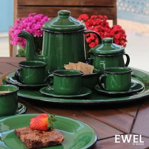 Para servir e decorar, além da beleza, os esmaltados da Ewel possuem vários benefícios. O esmaltado é um produto artesanal feito em aço especial, revestido interna e externamente por esmalte vítreo, adquirindo uma superfície lisa com cor e brilho. Possui diversos benefícios se tratando de cozimento e conservação dos alimentos. O material é atóxico, ou seja, não há contaminação dos alimentos por resíduos metálicos; máxima inibição a proliferação de germes e bactérias no preparo dos alimentos, por apresentar baixíssima porosidade preserva o sabor dos alimentos; superfície lisa que permite uma limpeza muito mais prática. Além disso o produto pode ser levado à máquina de lavar louças. Informamos que pequenos pontos nas peças não são considerados defeitos, e sim características do processo produtivo.