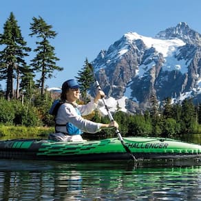 O Caiaque K1 Challenger será seu companheiro de aventuras e momentos inesquecíveis, se tornando indispensável em todas as suas viagens. Leve e fácil de carregar, o K1 Challenger é rápido de inflar e super compacto para . Com ele você navega com e conforto, exercita os braços e, como recompensa, tem maior com a natureza. Esse produto permite que você o para qualquer lugar e não o priva de navegar em lagos, rios e até no mar. Ainda vem com remos desmontáveis duplos em alumínio, bomba de ar, rede de proa para carregar objetos, sacola de e adesivo de reparos.