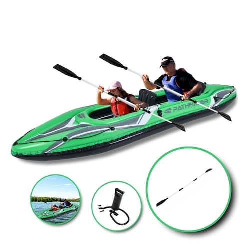 Caiaque Inflável Duplo 2 Pessoas com 2 Remos e Bomba de Ar Importway Iwci-002 Pathfinder