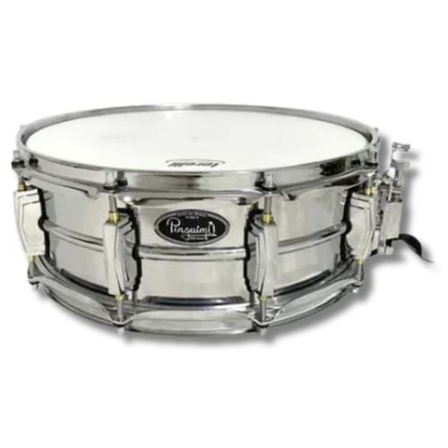 1 caixa pinguim ice snare 14x5 pcm70 alumínio cromado com buchas em brass e aros powerhoop